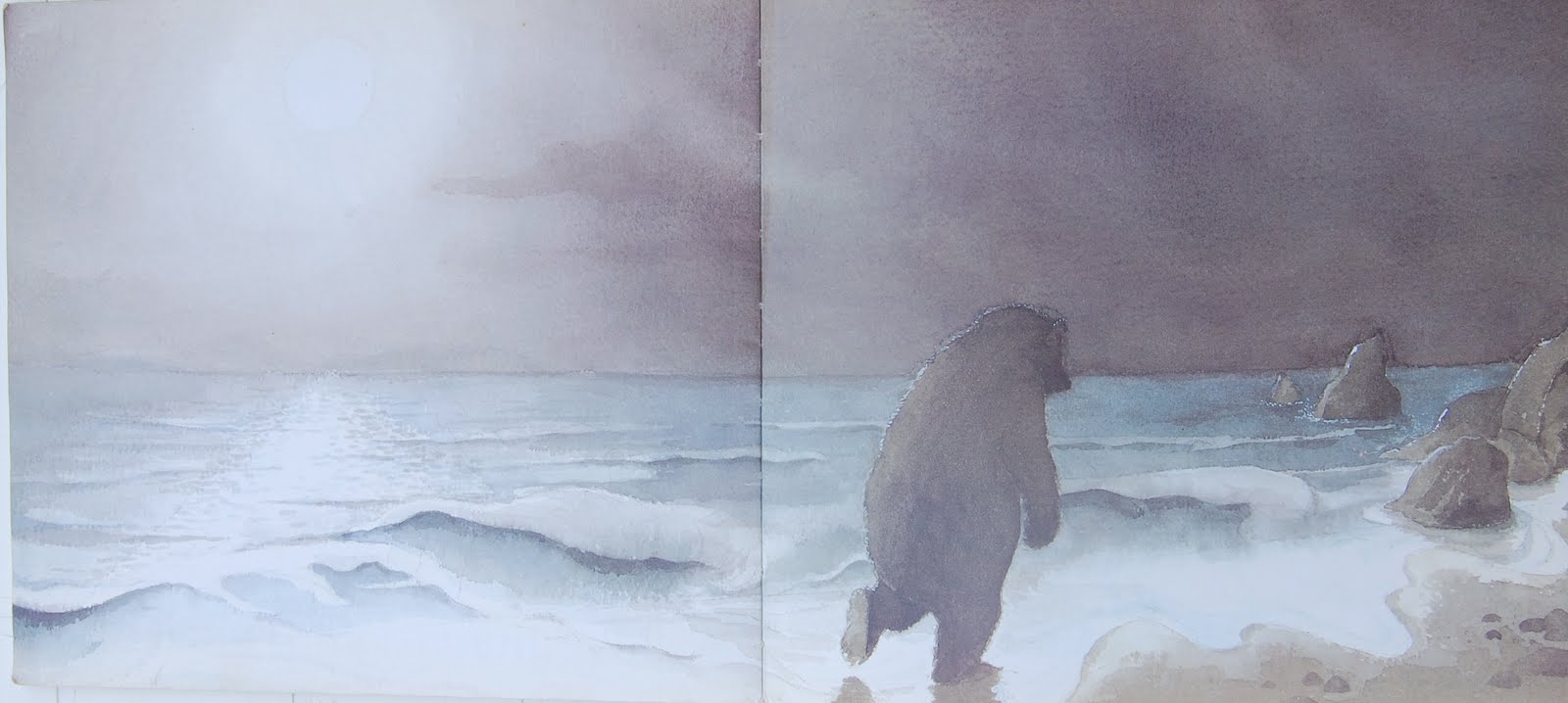 We sometimes read it “quietly” and concentrate on the sounds (like in the recording), or read it more actively, acting it out, moving our hands through the grass while we say swishy swashy, pretending to swim through the splash splosh, getting up and walking in the squelch squerchy mud and pretending to stumble and trip through the forest, before shivering through the snowstorm and tiptoeing into the cave and then doing it all in reverse order on the way back!