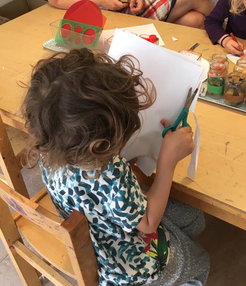 “In the kindergartens, we visited a lot of emphases is placed on creativity. Children have access to all kinds of materials. These 3 girls age 4, 5, and 6 were engrossed in making things. They had free access to collage material which they cut, folded and stuck. T And completing quite intricate drawings.”
